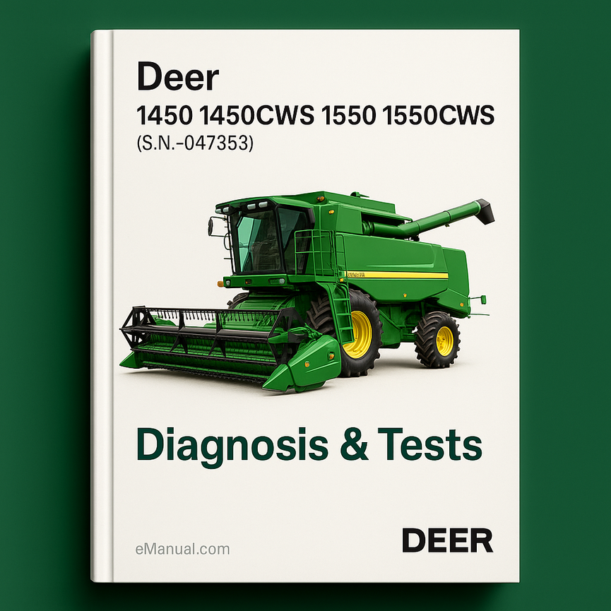 Deer 1450 1450CWS 1550 1550CWS Combines (S.N.-047353) Diagnosis & Tests...🏷️ Basic Information Identification Make: John Deere Model: 1450, 1450 CWS, 1550, 1550 CWS Year: Not Specified Generation: S.N. before 047353 📋 Manual Details Documentation Manual Type: Diagnosis & Tests Service Manual Language: English Page Count: 760 Format: PDF Features...