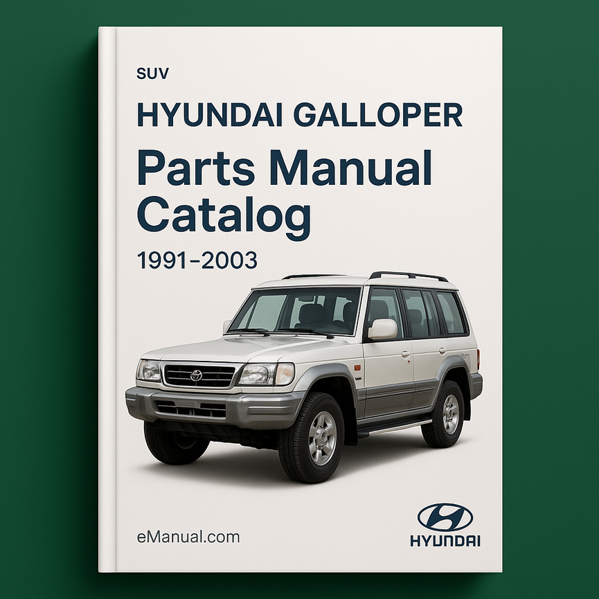 Hyundai GALLOPER Parts Manual Catalog 1991-2003Professional Quality: Parts Manual, Parts List, Parts Catalog With Exploded Diagrams. *Contains manufactures part numbers and diagrams for EVERY part. *You can enlarge views to see even the smallest part. *Exploded views are great for assembly/disassembly help. *All files are...