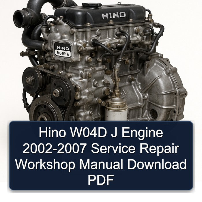 Hino W04D J Engine 2002-2007 Service Repair Workshop Manual Download...This manual covers the Hino W04D J Engine, produced between 2002 and 2007. It is designed to provide comprehensive information for the servicing, repair, and troubleshooting of this engine model. The engineering behind the Hino W04D J Engine emphasizes reliability...