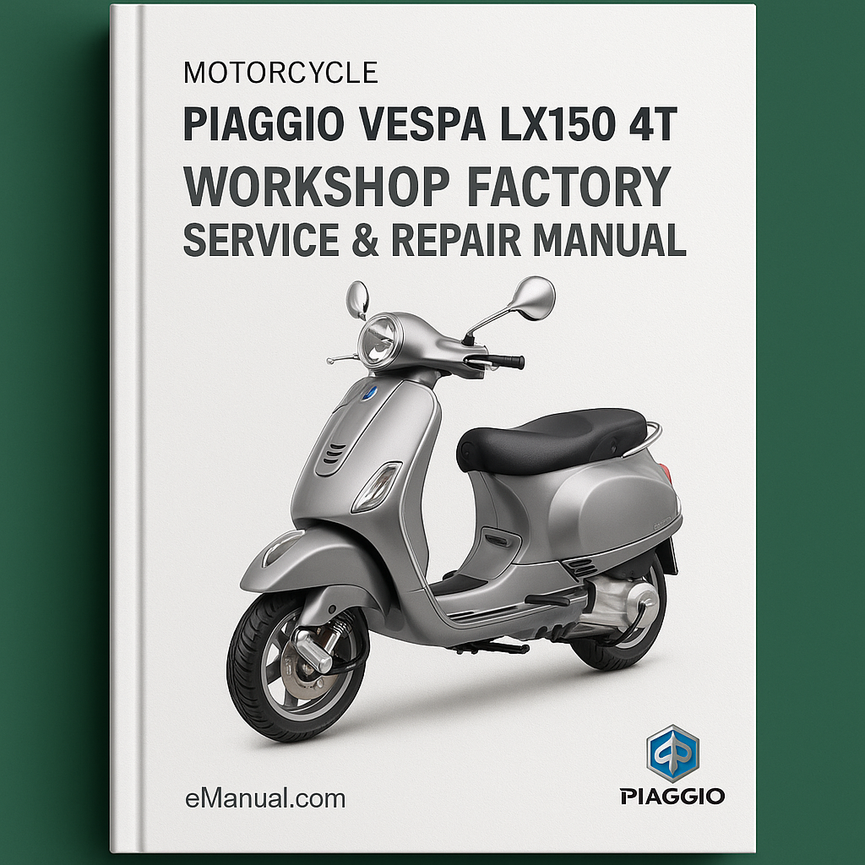 Piaggio Vespa LX150 4T Motorcycle Workshop Factory Service Repair Manual🏷️ Basic Information Identification Make: Piaggio Model: Vespa LX150 4T Model Variant: LX150 Four-Stroke Vehicle Type: Motorcycle / Scooter Generation Generation Name: LX Series Codes Engine Code Designation: LEADER / QUASAR (Specific to LX150 4T) 👋 Introduction Market Position Segment:...