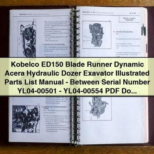 Kobelco ED150 Blade Runner Dynamic Acera Hydraulic Dozer Exavator Illustrated...Kobelco Hydraulic Excavator Illustrated Parts List Manual for Kobelco Model ED150 Blade Runner Dynamic Acera Hydraulic Dozer Exavators Between Serial Number YL04-00501 - YL04-00554. This illustrated parts catalog book contains detailed parts explosions, and exploded views, breakdowns of all part...