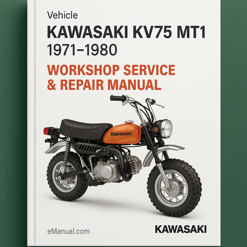 Kawasaki KV75 MT1 1971-1980 Workshop Service Repair Manual🏷️ Basic Information Identification Make: Kawasaki Model: KV75 MT1 Model Designation: MT1 Product Name: Kawasaki KV75 MT1 1971-1980 Workshop Service Repair Manual Codes Engine Code Placeholder: KV75 Generation Model Years Covered: 1971, 1972, 1973, 1974, 1975, 1976, 1977, 1978, 1979,...