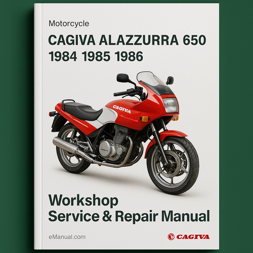 Cagiva Alazzurra 650 1984 1985 1986 Workshop Service Repair Manual🏷️ Basic Information Identification Make: Cagiva Model: Alazzurra 650 Years Covered: 1984, 1985, 1986 Codes Engine Code Designation: Likely based on Ducati Pantah or Elefant motors 👋 Introduction Market Position Segment: Sport Motorcycle Brand Positioning: Cagiva aimed for performance and...