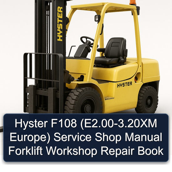 This Service Shop Manual covers the Hyster F108 (E2.00-3.20XM Europe) counterbalanced forklift. Engineered for demanding industrial environments, this internal combustion forklift utilizes an LP Gas fuel system and features a...