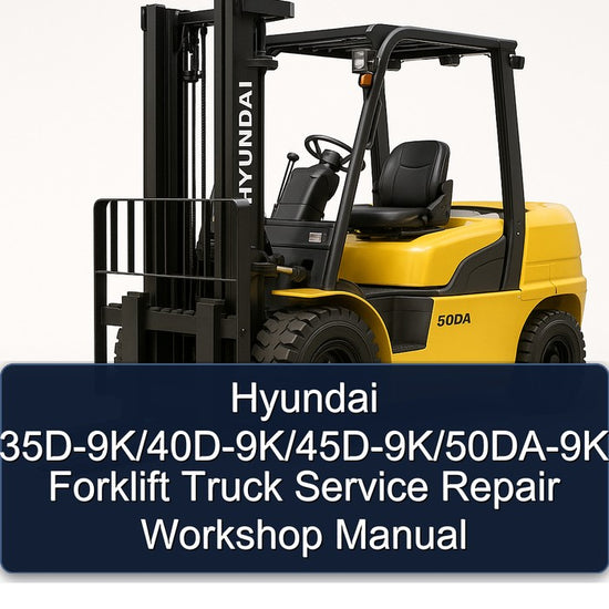 This manual covers the Hyundai 9K Series Forklift Trucks, including the 35D-9K, 40D-9K, 45D-9K, and 50DA-9K models. These heavy-duty industrial forklifts are engineered for demanding material handling applications in warehousing, manufacturing, and logistics environments. The 9K Series represents advancements in Hyundai's extensive line of industrial equipment, built for reliability and performance. This comprehensive guide is designed to be easy to read, providing all the information needed to perform procedures correctly and emphasizing the value of preventive maintenance to reduce costs and prevent premature failures. This Service Repair Workshop Manual provides in-depth coverage of all essential systems, including the powertrain, braking system, steering system, hydraulic system, electrical system, and mast assembly. It details routine and preventive maintenance procedures, troubleshooting guides for common and complex issues, and step-by-step instructions for the disassembly and assembly of major components and systems. The manual also includes electrical circuit diagrams, operational checks, and adjustment procedures, making it an indispensable resource for professional technicians, maintenance departments, fleet managers, and experienced users aiming to maintain, diagnose, and repair their Hyundai 9K Series forklifts efficiently and effectively.