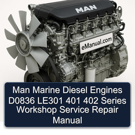 This workshop service repair manual covers the MAN D0836 Series marine diesel engines, including the LE301, LE401, and LE402 models. These engines are engineered for marine applications, featuring a 6-cylinder...