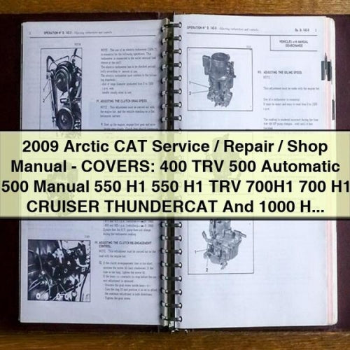 Download Arctic Cat 400 500 550 700 H1 TRV Thundercat...🏷️ Basic Information Identification Make: Arctic Cat Model: 400, 500, 550, 700 H1 TRV, Thundercat 1000 H2 Cruiser Year: 2009 Vehicle Type: ATV (All-Terrain Vehicle) Generation Platform Notes: Covers multiple displacements and configurations within the Arctic Cat ATV lineup for...