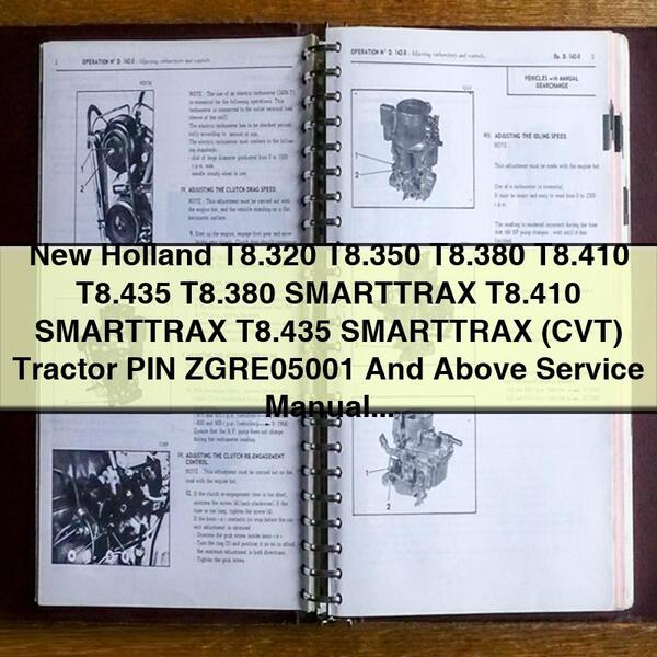 New Holland T8.320 T8.350 T8.380 T8.410 T8.435 T8.380 SMARTTRAX T8.410...This manual contains maintenance and repair procedures for theNEW HOLLAND T8.320, T8.350, T8.380, T8.410, T8.435, T8.380 SMARTTRAX, T8.410 SMARTTRAX, T8.435 SMARTTRAX (CVT) TRACTOR PIN ZGRE05001 AND ABOVE.This manual is a PDF file any one of which we can be printed...