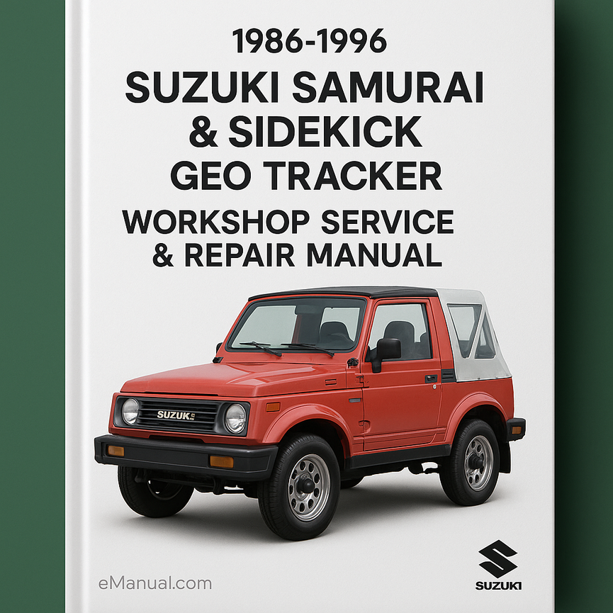 Suzuki SIDEKICK & SAMURAI GEO TRACKER 1986-1996 Service Repair Manual...🏷️ Basic Information Identification Make: Suzuki Other Makes: Geo Model: Sidekick Other Models: Samurai, Tracker Model Years Covered: 1986, 1987, 1988, 1989, 1990, 1991, 1992, 1993, 1994, 1995, 1996 Codes Diagnostic Trouble Codes Coverage: Includes coverage for common diagnostic trouble...