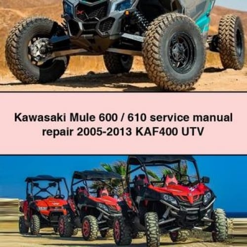 Kawasaki Mule 600 / 610 Service Manual Repair 2005-2013 KAF400...🏷️ Basic Information Identification Make: Kawasaki Model: Mule 600 / 610 Year: 2005-2013 Generation: KAF400 Vehicle Type: UTV (Utility Task Vehicle) 📋 Manual Details Publication Manual Type: Factory Service Manual / Repair Manual Language: English Page Count: 451 Format: PDF...