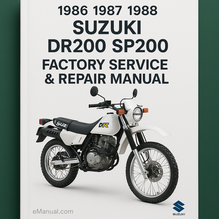 1986 1987 1988 Suzuki DR200 SP200 models Factory Service Repair...🏷️ Basic Information Identification Make: Suzuki Model: DR200 / SP200 Production Years Covered: 1986, 1987, 1988 Engine Codes Or Variants: G, H, J (representing model year variations within the 1986-1988 period) Codes Manual Part Number: 99500-41072-03E 👋 Introduction Market Position...