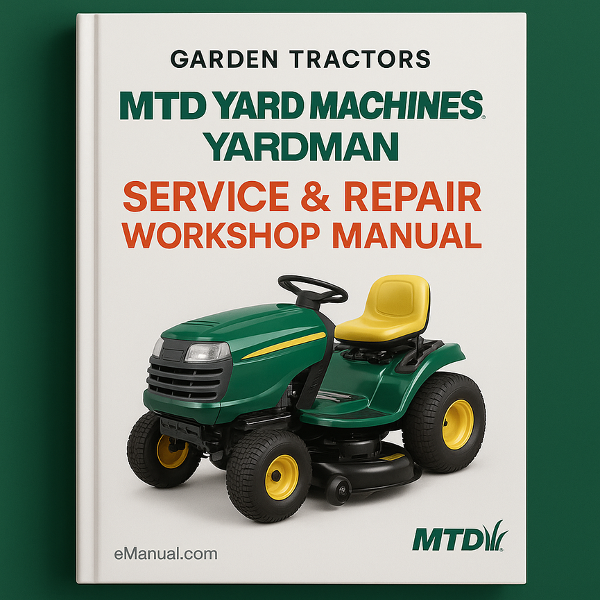 MTD Yard Machines Yardman Service Repair Workshop Manual for Garden...🏷️ Basic Information Identification Make: MTD (Modern Tool and Die) Brand Line: Yard Machines / Yardman Product Type: Garden Tractor / Riding Lawn Mower Covered Model Series: 800 Series, 900 Series Covered Model Years: 1985-1998 (for 800 Series), 1991-1998 (for...