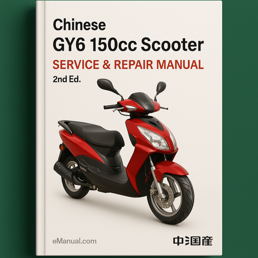 Chinese GY6 150cc Scooter Service Repair Manual WC 2nd Ed.Water Cooled 150cc Scooter Only: Contents: by Chapter Servicing information 1 Vehicle body!muffler 2 Inspection & Adjustment 3 Lubricating system 4 Carburetor !air filter 5 Cooling system 6 Disassembly of engine 7 Cylinder 8 CVT system 9 Gearbox 10 Right...