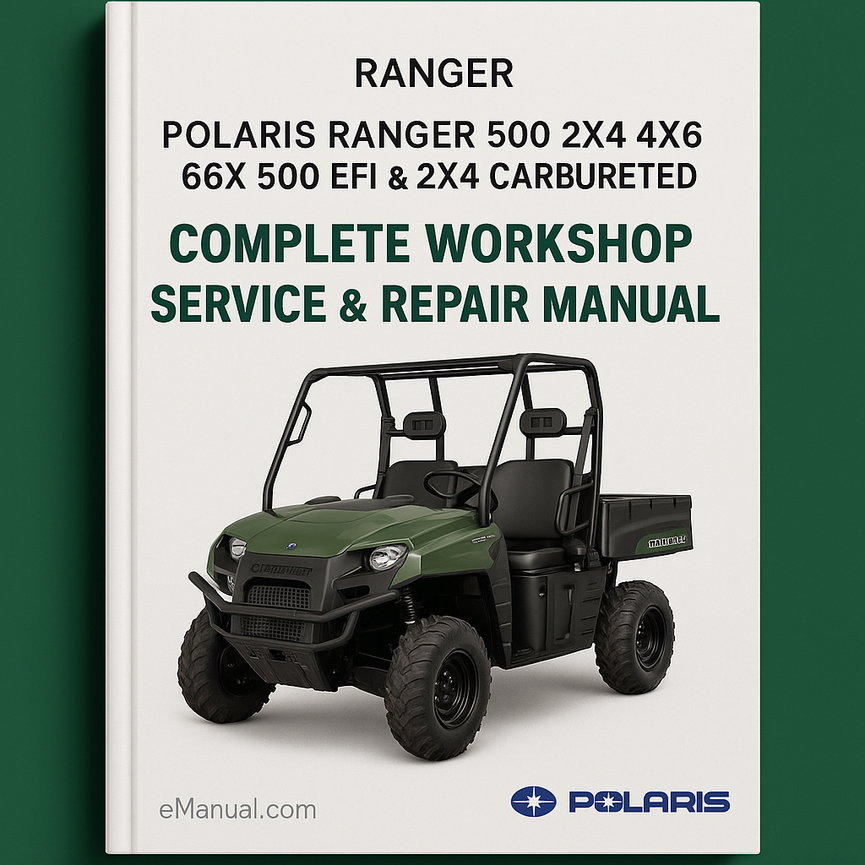 Polaris Ranger 500 2x4 4x4 6x6 500 EFI & 2x4...🏷️ Basic Information Identification Make: Polaris Model: Ranger Model Variant: 500 Model Variants Covered: 2x4, 4x4, 6x6 Engine Variants Covered: 500 EFI, 2x4 Carbureted Years Covered: 1999, 2000, 2001, 2002, 2003, 2004, 2005, 2006, 2007, 2008, 2009, 2010, 2011, 2012...