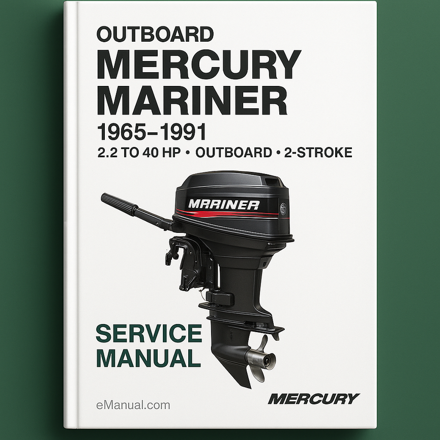 MERCURY/MarineR Download 1965 1991 Service Manual 2.2 to 40 HP...🏷️ Basic Information Identification Make: Mercury/Mariner Model: Outboard 2-Stroke Year Range: 1965-1991 Generation: N/A (Comprehensive coverage across multiple model years) 📋 Manual Details Documentation Manual Type: Service Manual / Workshop Manual / Repair Manual Language: English Page Count: Not specified,...