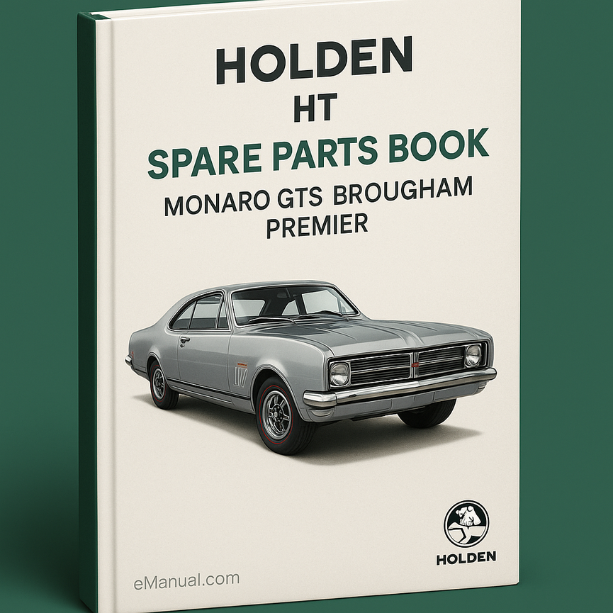 HOLDEN HT Spare Parts Book CatalogUE MONARO GTS BROUGHAM PRE🏷️ Basic Information Identification Make: Holden Model: HT Series (Belmont, Kingswood, Premier, Brougham, Monaro, Monaro GTS, Monaro GTS 350) Year Range: 1970-1971 (as this is the HT generation, the manual is dated August 1972, indicating coverage of this period) Codes...