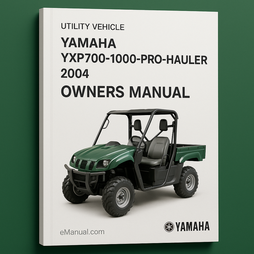 Yamaha YXP700-1000-Pro-Hauler Owners Manual 2004This owners manual PDF download will provide you with a good basic understanding of the features and operation of this machine.This manual includes important safety information. It provides information about special techniques and skills necessary to ride the machine.Language :...