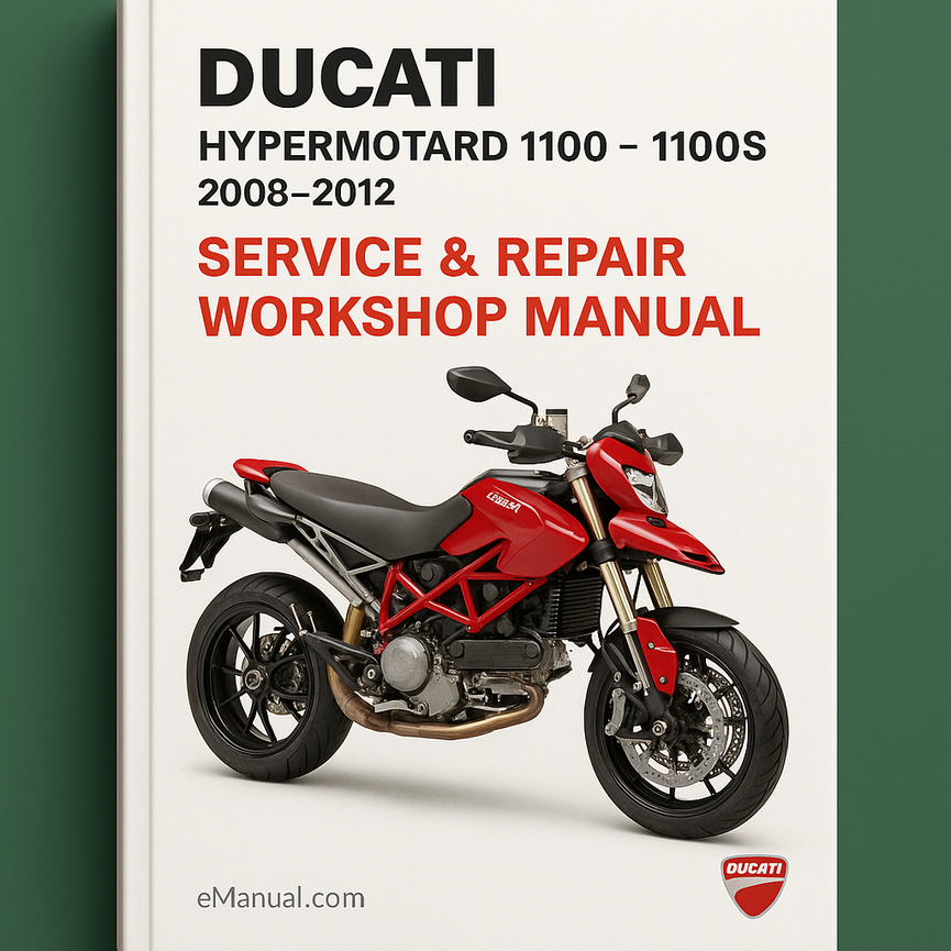 Ducati HyperMotard 1100 1100S 2008-2012 Service Repair Workshop Manual🏷️ Basic Information Identification Make: Ducati Model: HyperMotard 1100 Model Variant: 1100S Years Covered: 2008, 2009, 2010, 2011, 2012 Codes Engine Code: DS1000 (desmodromic L-twin) 👋 Introduction Market Position Category: Supermoto / Naked Sportbike Description: The Ducati HyperMotard 1100 represents...