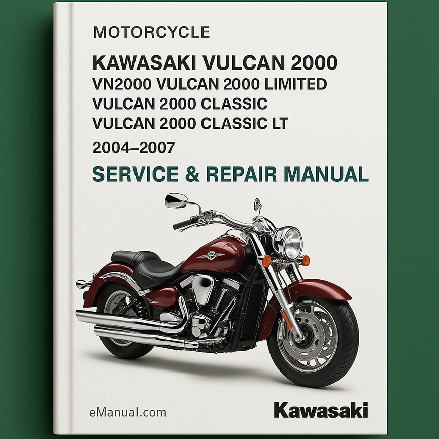 Kawasaki 900 Classic LT Vulcan 06-13 Workshop Service Manual🏷️ Basic Information Identification Make: Kawasaki Model: Vulcan 900 Classic LT Model Variant: Classic LT Product Type: Workshop Service Manual Product Format: PDF Download Generation Covered Model Years: 2006, 2007, 2008, 2009, 2010, 2011, 2012, 2013 Codes Kawasaki Model Code...