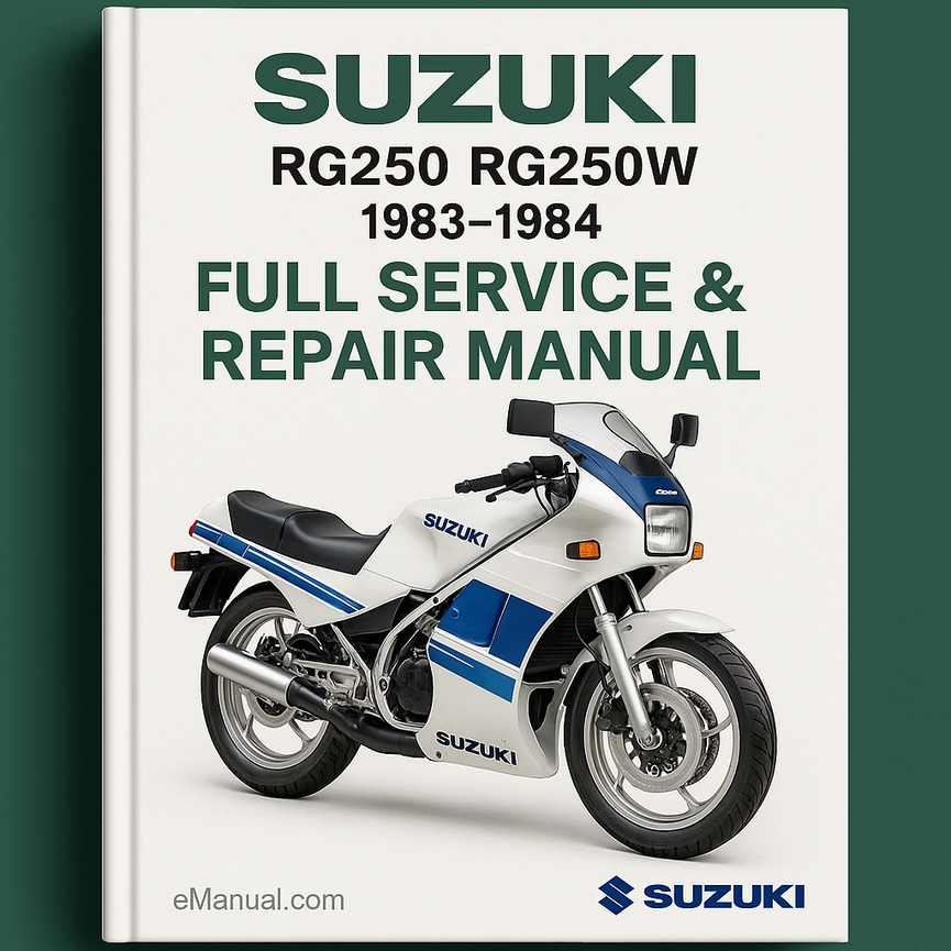 Suzuki RG250 RG250W Full Service & Repair Manual 1983-1984🏷️ Basic Information Identification Make: Suzuki Model: RG250 Model Code: RG250W Model Variant: Gamma Production Years Covered: 1983-1984 👋 Introduction Market Position Vehicle Class: Lightweight Sportbike / Two-Stroke Sportbike Target Audience: Enthusiasts, owners, and independent mechanics seeking in-depth knowledge of...