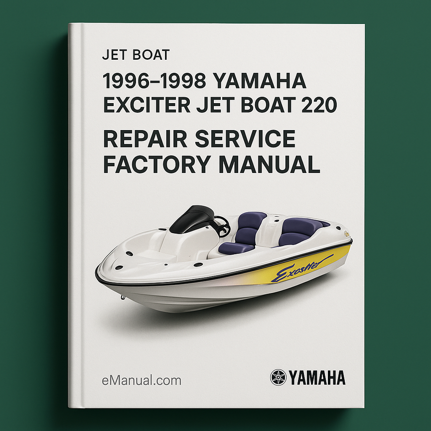 1996-1998 Yamaha EXCITER JET BOAT 220 Repair Service Factory Manual1996-1998 YAMAHA EXCITER JET BOAT 220 REPAIR SERVICE FACTORY MANUAL PDF DOWNLOAD INSTANT DOWNLOAD - NO SHIPPING - START YOUR REPAIRS RIGHT AWAY This manual is based on a complete tear down and rebuild with comprehensive coverage Fully illustrated with...