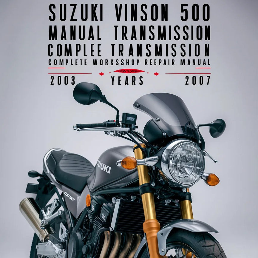 Suzuki Vinson 500 LT-F500F Manual Transmission Complete Workshop Service Repair...Suzuki Vinson 500 LT-F500F Manual Transmission Complete Workshop Service Repair Manual 2003 2004 2005 2006 2007 Thanks for taking the time to look at this Complete Service Repair Workshop Manual.This Downloadable Manual covers every Service & Repair Procedure you will...
