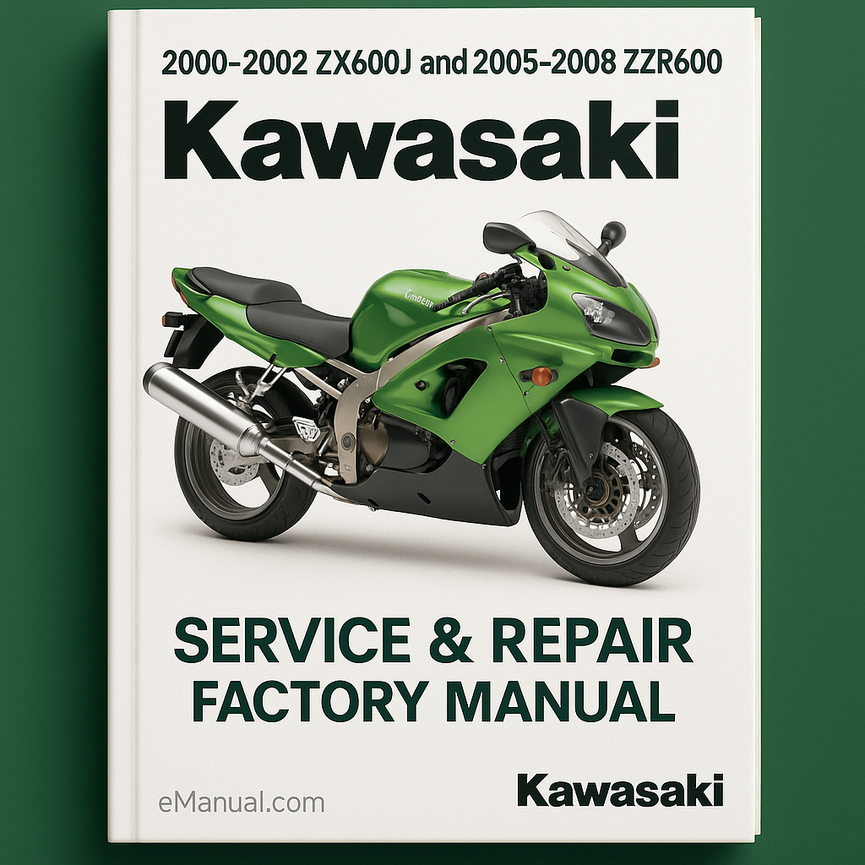 Kawasaki 2000-2002 ZX600J and 2005-2008 ZZR600 Service Repair Factory Manual...🏷️ Basic Information Identification Make: Kawasaki Model: ZX600J Ninja ZX-6R / ZZR600 Generation Model Generations Covered: ZX600J (2000-2002), ZZR600 (2005-2008) Codes Chassis Codes: ZX600J1, ZX600J2, ZX600J3 (for 2000-2002 ZX-6R); ZX600P (for 2005-2008 ZZR600) 👋 Introduction Market Position Target Audience: Enthusiast...